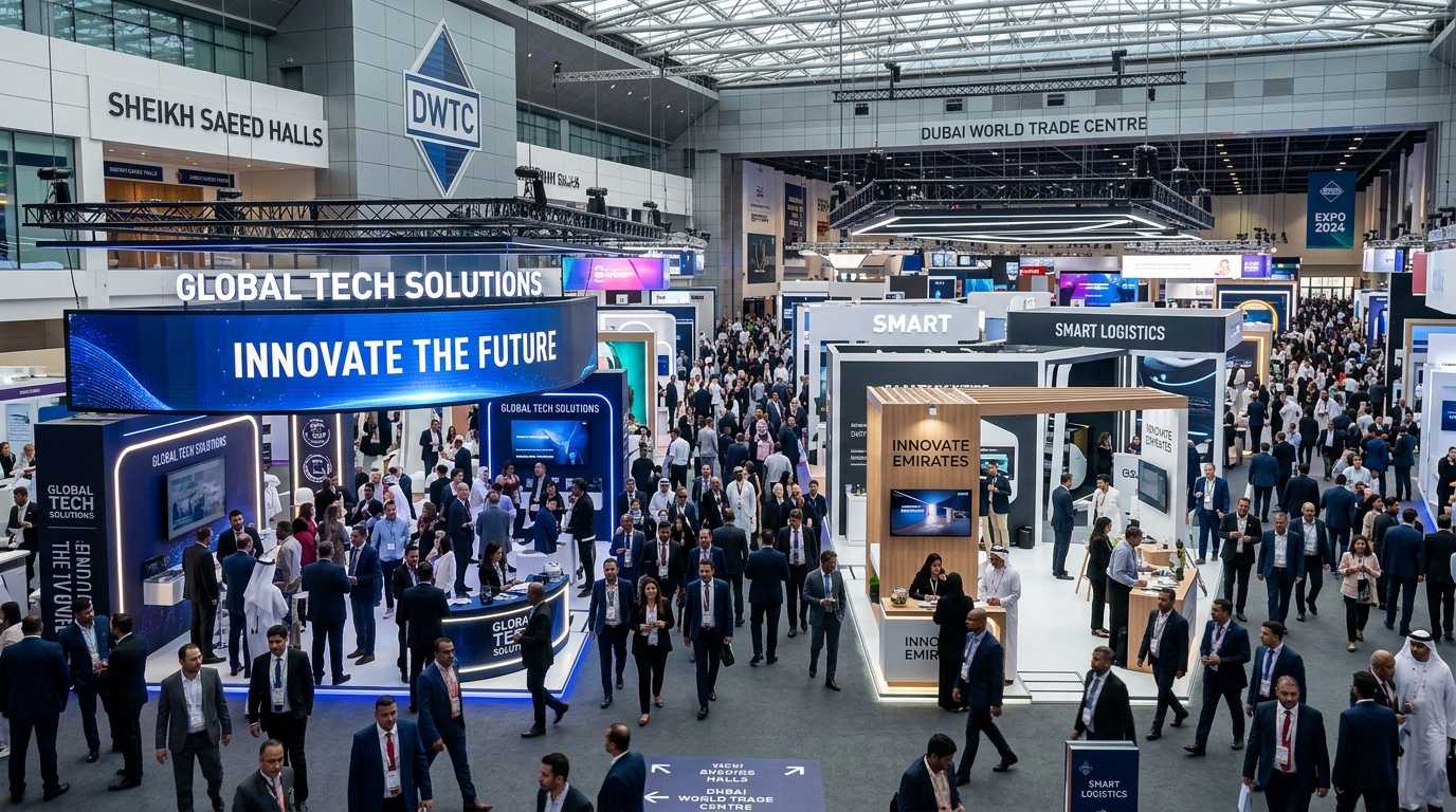 迪拜继续巩固其作为全球贸易展览枢纽的地位。2026年4月,这座城市将迎来一系列重量级活动,包括**中东能源展 (Middle East Energy)**、**中东太阳能展 (Intersolar)** 以及 **迪拜国际游艇展**。对于参展商而言,在迪拜世界贸易中心 (DWTC) 熙熙攘攘的展厅中脱颖而出,不仅需要参与,更需要具有冲击力的品牌呈现。